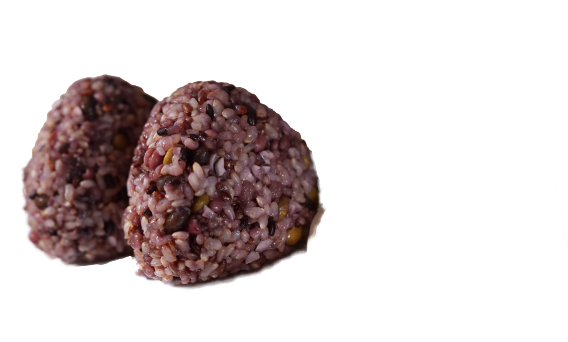 とほかみ雑穀米はクセが少ないためおにぎりにもぴったり。ほんのりとした豆のあまさが味付けなしでも美味しく食べられるのがおにぎりです。