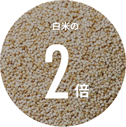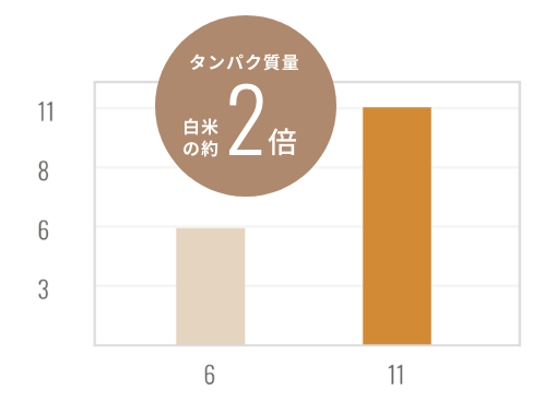 とほかみ雑穀米100gに含まれるタンパク質量は白米の約2倍です。普段の生活で不足しがちなタンパク質を毎日の食事から摂取することができます。